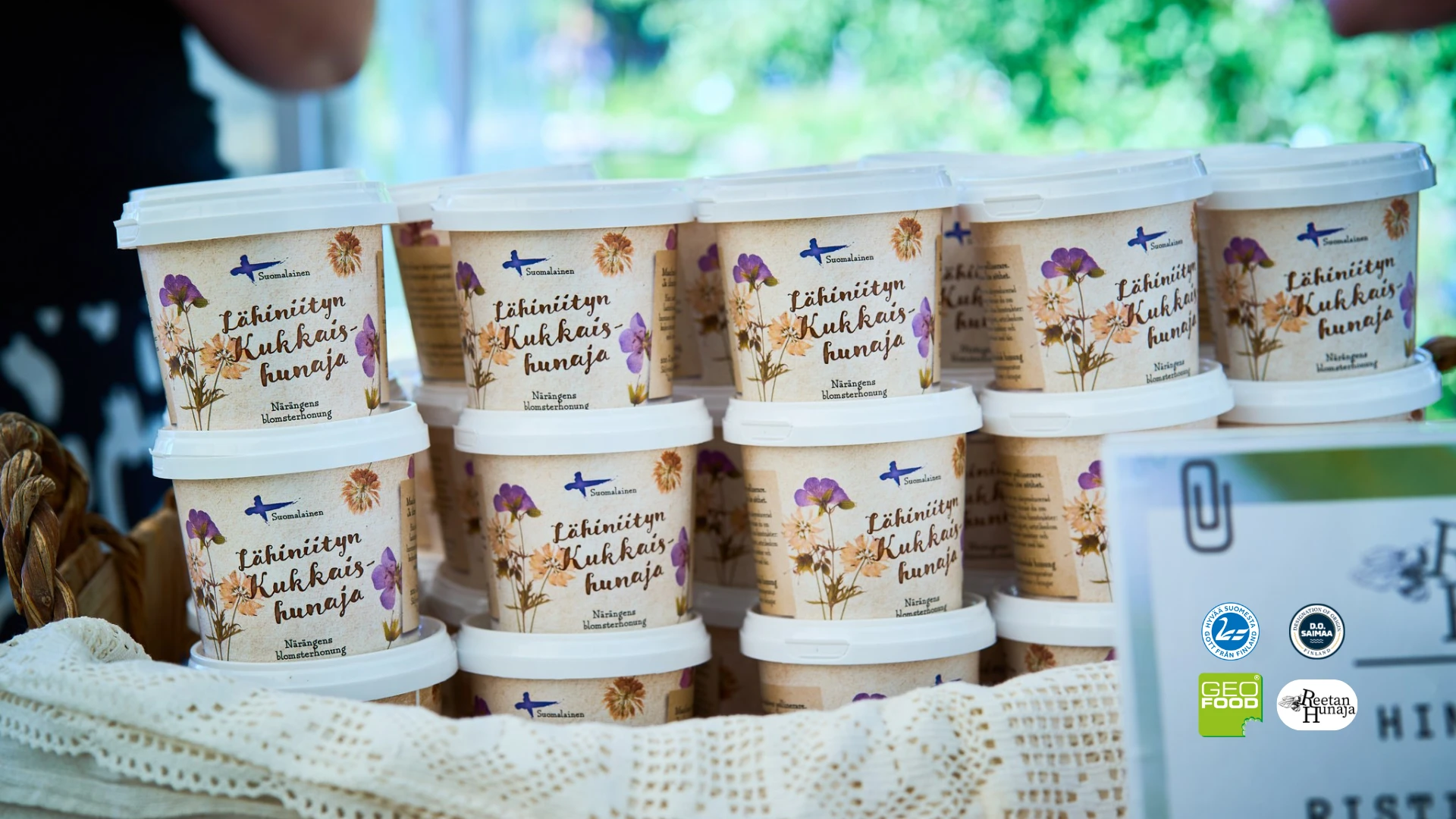 Reetan hunajalla on Hyvää Suomesta- merkki, tuotteemme on 100% suomalaisia. Ne tuotetaan, valmistetaan ja pakataan Suomessa!